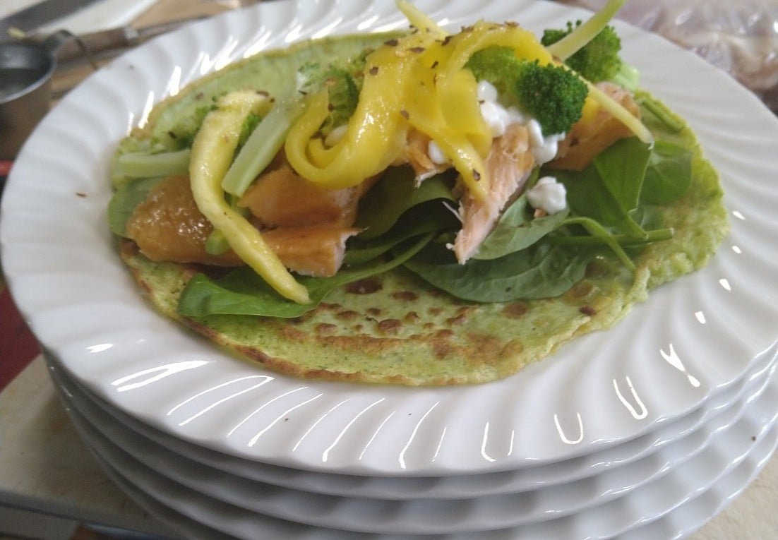 I forbindelse med loppemarkedet gennem Guldborg By serverede vi bl.a. spinatpandekager med laks, hytteret og mango samt ”sol over Guldborg” og som altid massevis af frisksmurt smørrebrød.